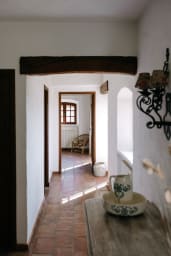 Outside, the farmhouse offers different spaces to fully enjoy the surrounding beauty.
