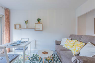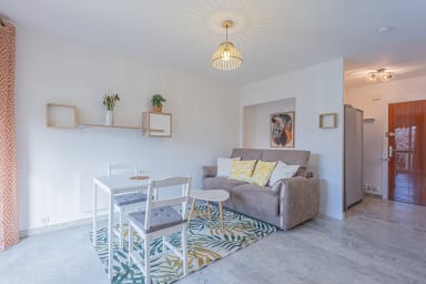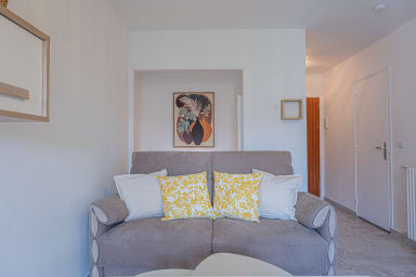Notre appartement de 24 m², situé Rue Aurélienne au 1er étage avec ascenseur d'un immeuble très bien entretenu, offre de belles prestations. Rénové et décoré avec soin, l'appartement se compose d'une belle pièce principale avec un coin cuisine et un coin salon avec un canapé. Le canapé se transforme en canapé lit confortable. Vous profitez d'un magnifique balcon ensoleillé et au calme. La salle de bain comprend une douche à l'italienne, un meuble vasque, un WC et un lave-linge. L'appartement offre une place de parking privative en extérieur. Nombreux restaurants et commerces à proximité immédiate. Le Palais des Festivals et des Congrès de Cannes est 15 min en bus ou en voiture.
