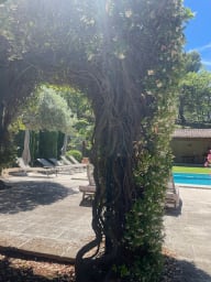 Superbes extérieurs, vaste terrain avec différents coins détente, une oliveraie, plusieurs terrasses pour déjeuner ou diner entre amis ou en famille, randonnée et promenade directement accessible.