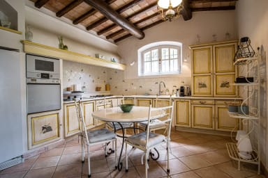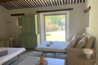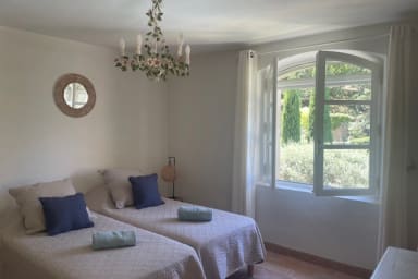 La propriété de 300m2 est composée de 3 chambres à la décoration provençale ainsi que d'une suite parentale. Il y a également une dépendance avec canapés-lits proche de la piscine avec salon / cuisine et salle de bains.