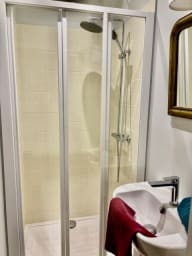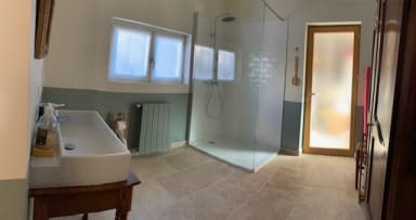 Au rez-de-chaussée, un spacieux séjour / salle à manger avec une grande table, deux canapés, et une cheminée. Ainsi qu'une chambre et une salle de bain rénovée cette année avec douche à l'italienne. 2 chambres sont situées au premier étage, et 2 autres au dernier étage.