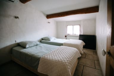 La deuxième chambre est équipée de deux lits simples, parfaite pour les familles ou les amis voyageant ensemble.