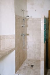 Une salle de bain moderne avec baignoire et douche à l'italienne complète cet étage, offrant tout le confort nécessaire pour votre séjour.