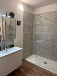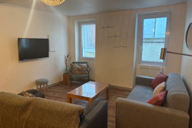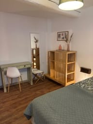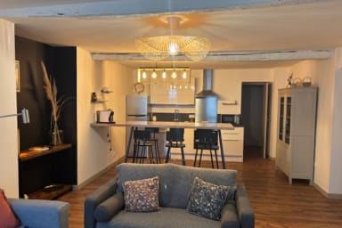 L’appartement offre un grand espace ouvert avec une cuisine entièrement équipée, un salon lumineux, ainsi que deux chambres indépendantes décorées avec soin. Chacune dispose de rangements pratiques pour un séjour sans encombre et d’une ambiance cosy, alliant modernité et charme authentique. La salle d’eau est fonctionnelle et bien agencée.